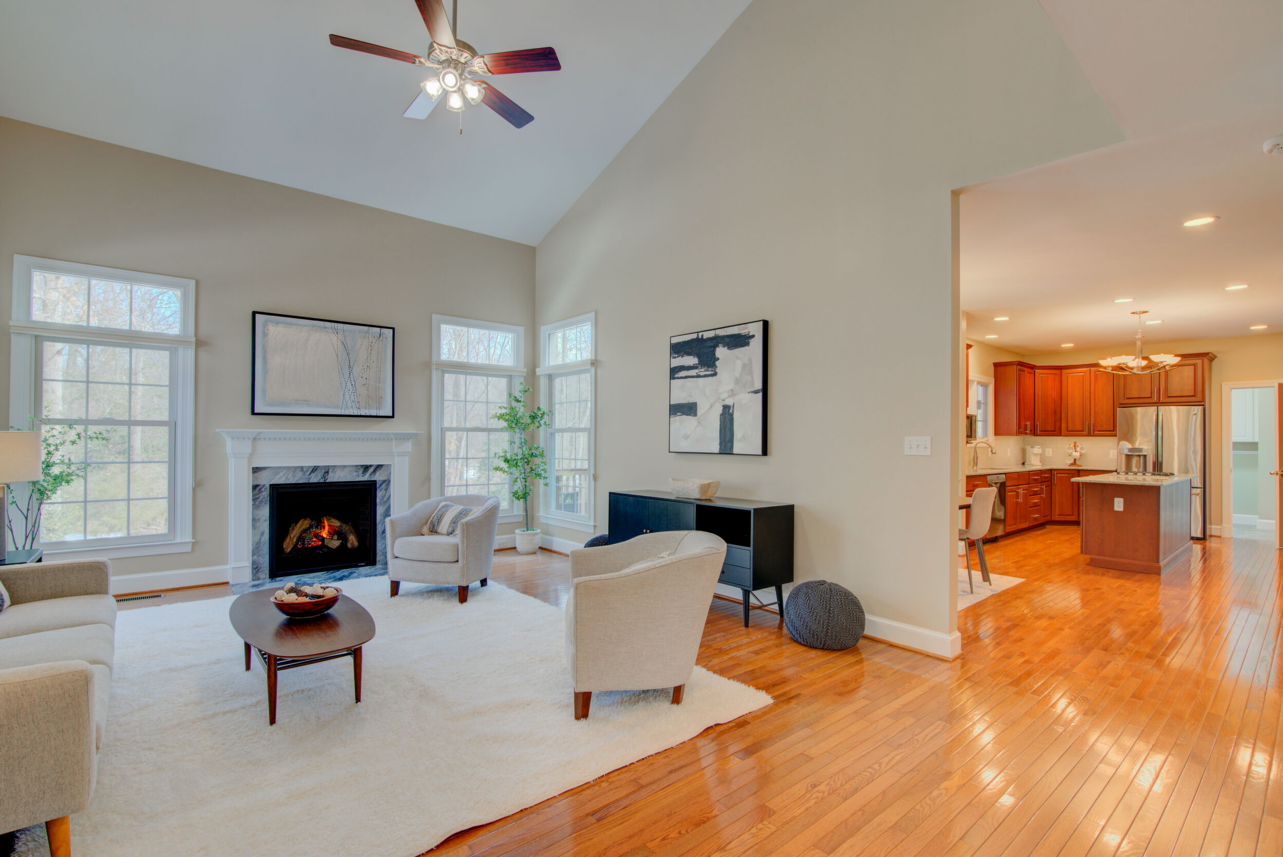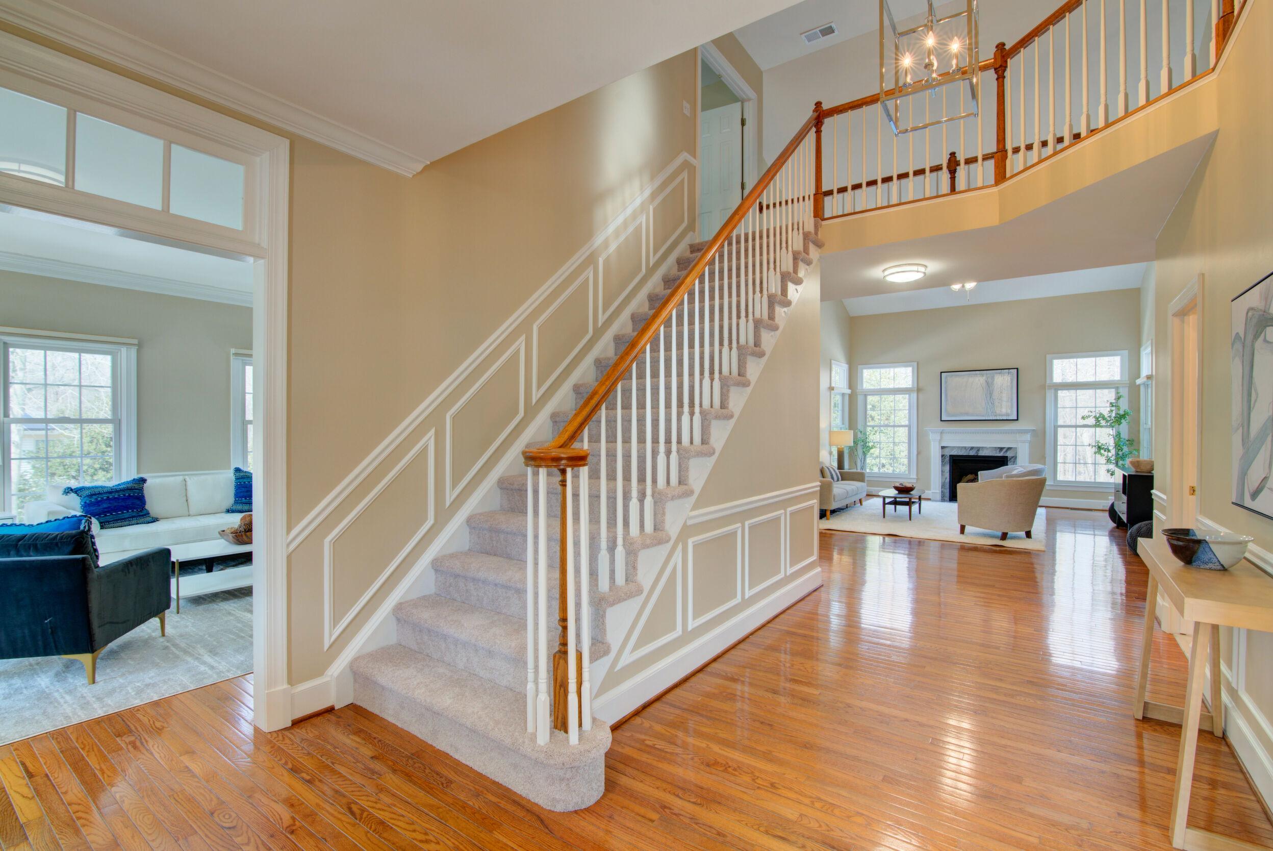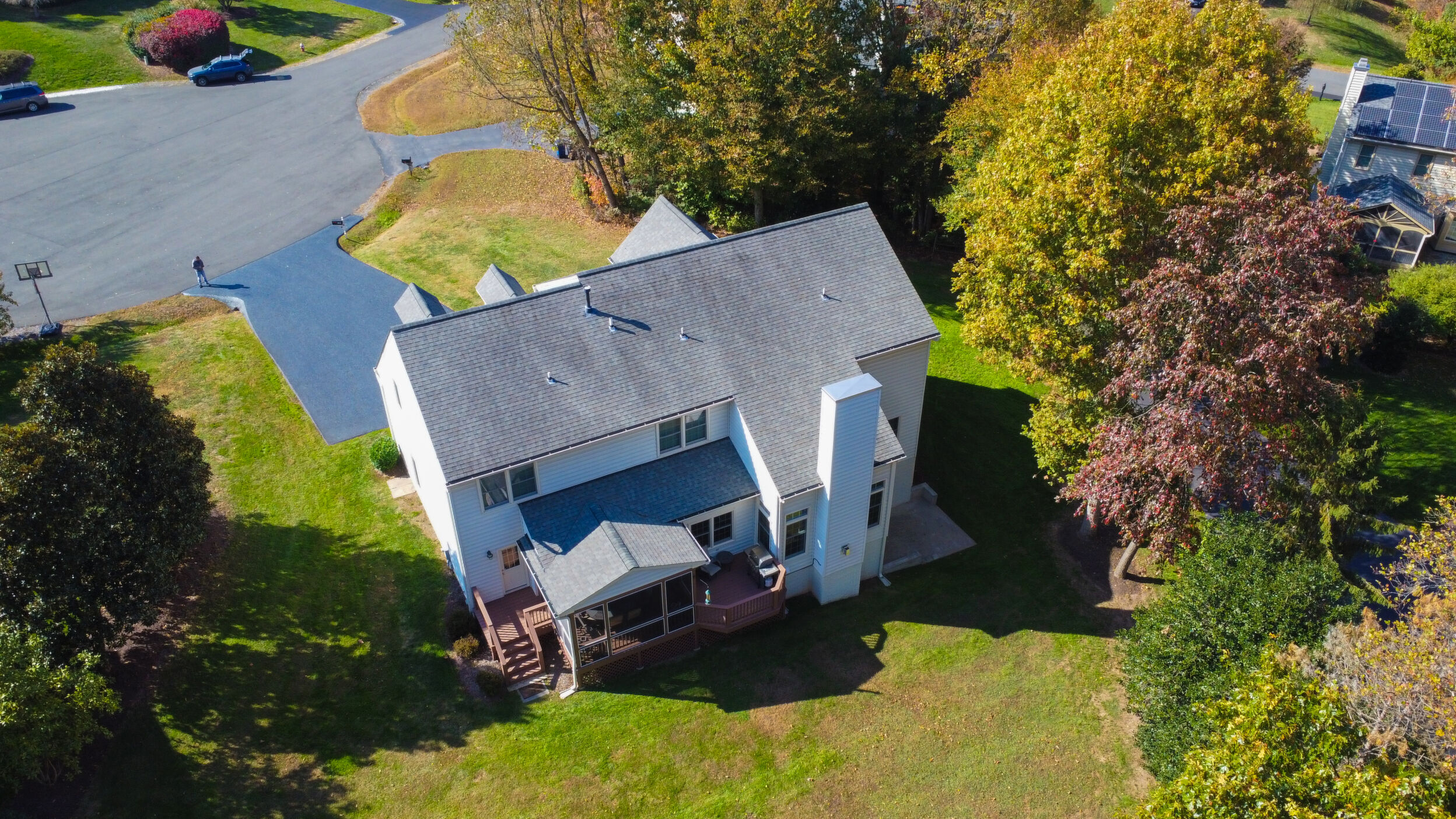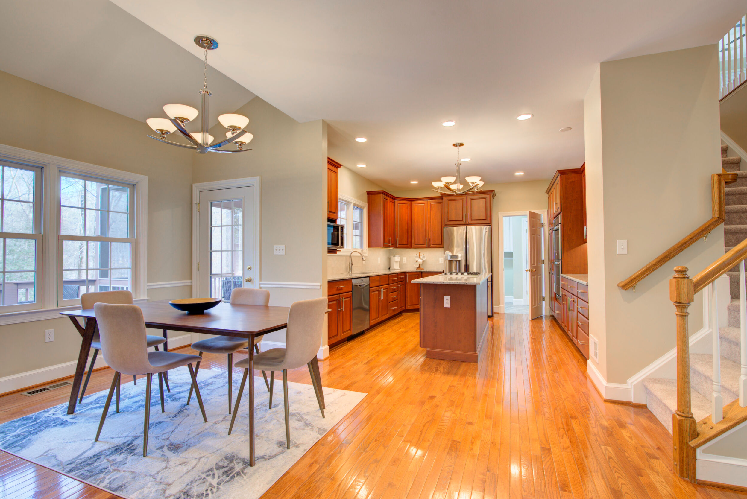 Experience refined living in this exceptional property combining elegance, space, privacy, and location. Updated and expansive with over 5,500 square feet, 9 ft ceilings and custom mouldings, this brick residence is beautifully sited on a private .46-acre lot backing to wooded parkland on a cul-de-sac in the Stoney Creek Woods community, within the highly sought after Langley/Cooper/Forestville pyramid. This elegant home combines generous proportions, timeless finishes, and an ideal layout designed for both everyday comfort and exceptional entertaining. Upon entering, you are welcomed by a dramatic two-story foyer featuring a wide open staircase, transom windows, gleaming hardwood floors, and stunning sight lines that showcase the home's open floor plan. Flanking the foyer are a gracious formal dining room, perfectly sized for large gatherings and holiday celebrations, and a light-filled living room highlighted by walls of windows that bathe the space in natural light. At the heart of the home is the impressive two-story family room with a soothing gas fireplace and magnificent corner windows that frame serene backyard views. French doors lead to a sought-after main level office, offering a peaceful work-from-home setting overlooking the treed parkland. Seamlessly connected to the family room is the chef's kitchen, appointed with custom cabinetry, quartz countertops, a center island with gas cooktop, double wall ovens, and Stainless Steel appliances. The adjoining breakfast room opens to both a screened porch and deck, creating effortless indoor-outdoor living and the perfect setting for morning coffee or evening gatherings while enjoying the expansive backyard. Completing the main level is a highly functional laundry/mudroom with direct access to the rear yard and entry to the two-car garage. Ascend either the front or back staircases to reach the upper-level where the home continues to impress with a dramatic hallway overlook to both the foyer and family room below. Through French doors, the primary suite serves as a true private retreat, featuring a spa-like bath with separate vanities, a luxurious soaking tub, a separate sitting room with french doors, and an expansive walk-in closet with built-in shelving. Bedrooms two and three share a Jack and Jill bath with dual sinks, while the fourth bedroom enjoys its own en-suite bathroom. The enormous walk-out lower level is filled with natural light from full-sized windows and French doors leading to the patio. This versatile space includes a wet bar, a finished pantry room with built-in shelving, a full bathroom, a large bonus room with additional washer and dryer hook-up, and abundant storage. Whether used for movie nights, game days, a home gym, or lively gatherings, this level offers incredible flexibility to suit a variety of lifestyles. Ideally located just minutes from Great Falls, Reston's North Point Shopping Center, Reston Town Center, and One Loudoun. Convenient access to Metro, Routes 7 and 267, and the Dulles Greenway. Capital Improvements Include: 2026: New Carpet on Upper and Lower Levels. 2025: New Light Fixtures. Refreshed Upper level Bathrooms. Front Porch Painted. New Garbage Disposer. Interior Paint. Deck Stained. Professionally Sealed Driveway with Custom Oil-Based Coating. 2024: New Ceiling Fans. New Stainless Steel Chimney Cover. 2023: New Heat Pump and Air Handler. New Driveway Expanded to Over Double Width. 2021: New Gas Fireplace with Blower & Remote. 2018: Deck and Porch Screening Professionally Refurbished. 2017: New Roof with 50 Year Shingles and Transferable Warranty. New Oversized Gutters and Downspouts. New 75-Gallon Hot Water Heater. 2016: New Windows. 3 New Exterior Doors.