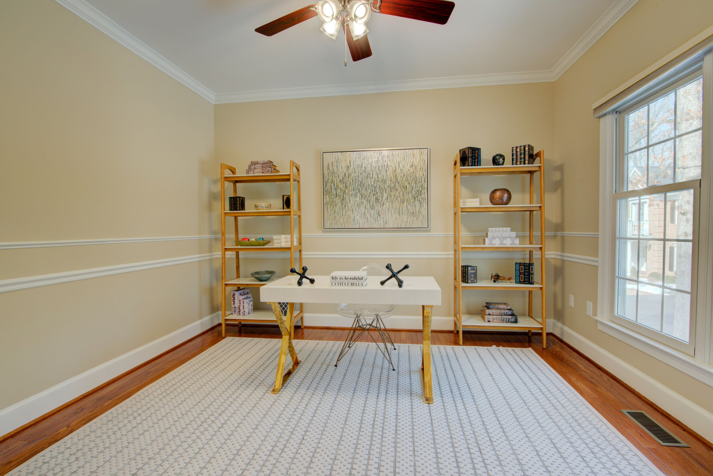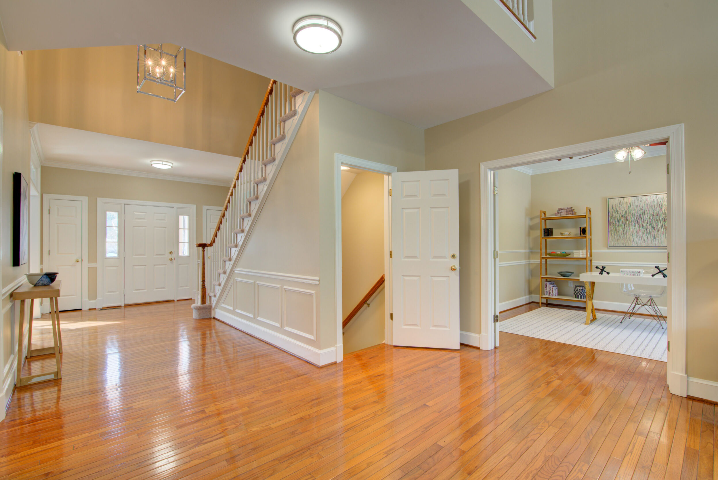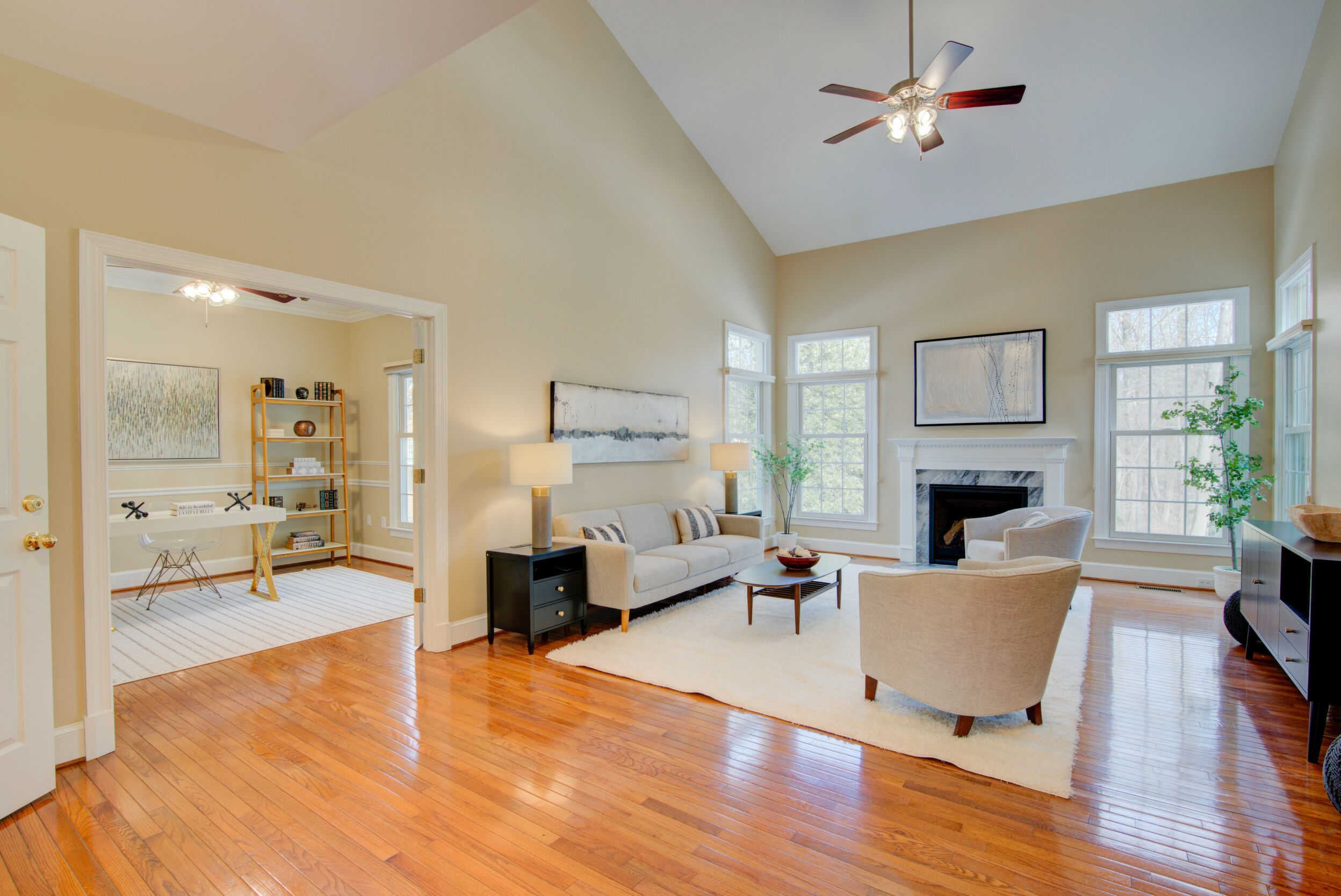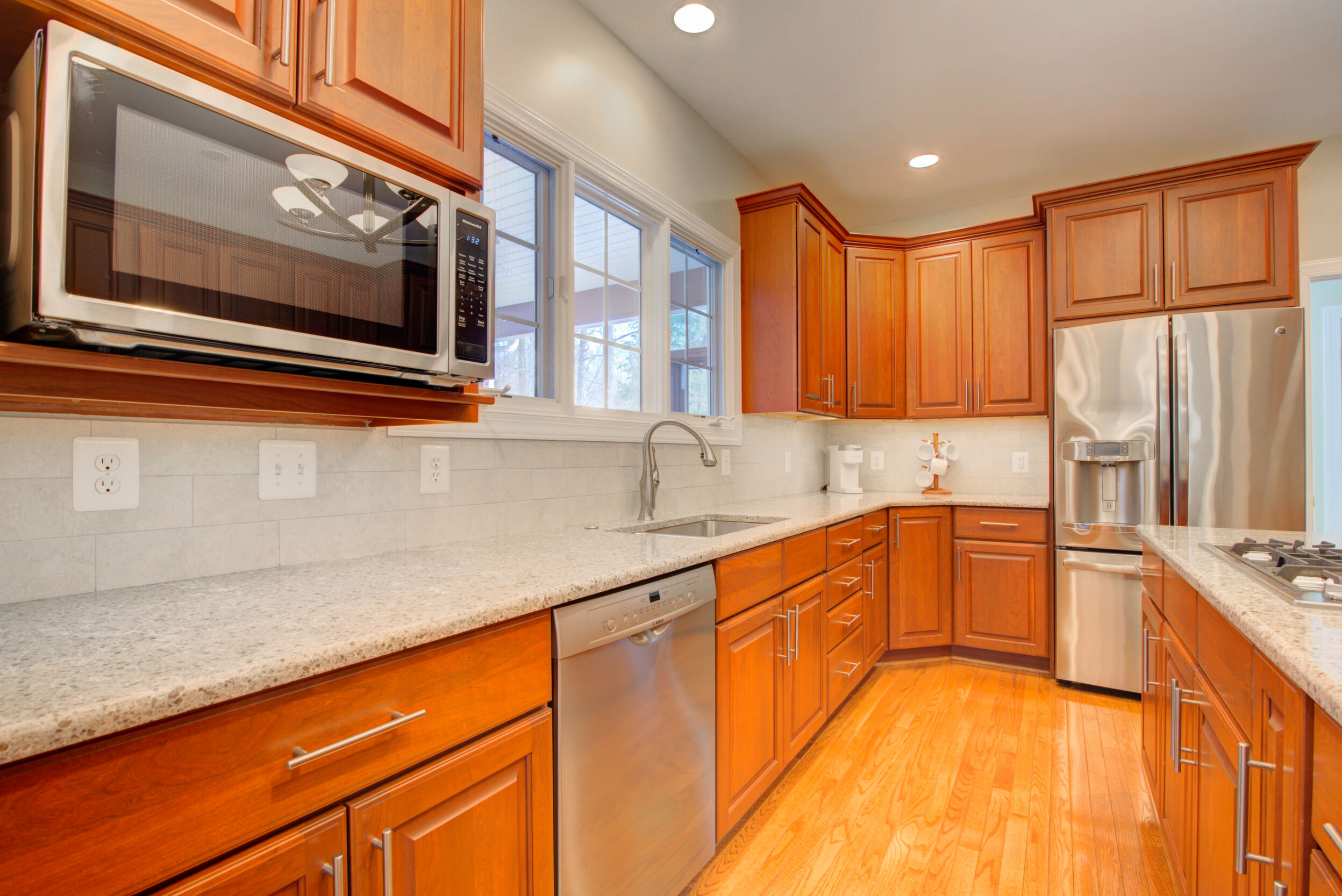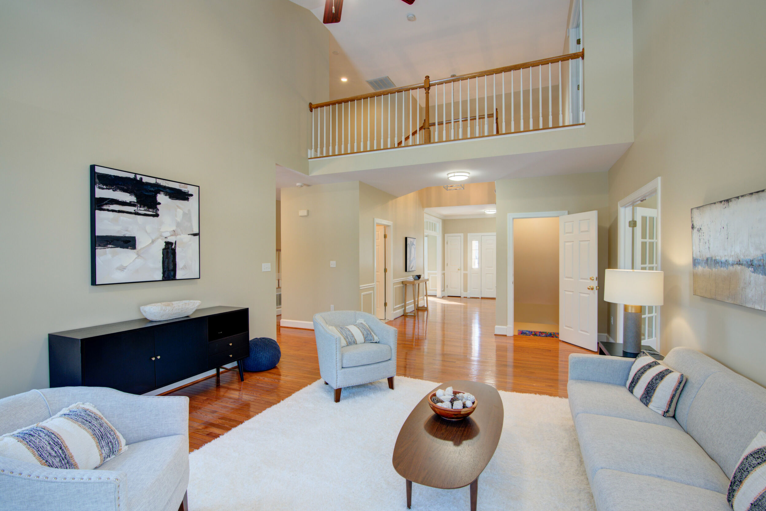 Experience refined living in this exceptional property combining elegance, space, privacy, and location. Updated and expansive with over 5,500 square feet, 9 ft ceilings and custom mouldings, this brick residence is beautifully sited on a private .46-acre lot backing to wooded parkland on a cul-de-sac in the Stoney Creek Woods community, within the highly sought after Langley/Cooper/Forestville pyramid. This elegant home combines generous proportions, timeless finishes, and an ideal layout designed for both everyday comfort and exceptional entertaining. Upon entering, you are welcomed by a dramatic two-story foyer featuring a wide open staircase, transom windows, gleaming hardwood floors, and stunning sight lines that showcase the home's open floor plan. Flanking the foyer are a gracious formal dining room, perfectly sized for large gatherings and holiday celebrations, and a light-filled living room highlighted by walls of windows that bathe the space in natural light. At the heart of the home is the impressive two-story family room with a soothing gas fireplace and magnificent corner windows that frame serene backyard views. French doors lead to a sought-after main level office, offering a peaceful work-from-home setting overlooking the treed parkland. Seamlessly connected to the family room is the chef's kitchen, appointed with custom cabinetry, quartz countertops, a center island with gas cooktop, double wall ovens, and Stainless Steel appliances. The adjoining breakfast room opens to both a screened porch and deck, creating effortless indoor-outdoor living and the perfect setting for morning coffee or evening gatherings while enjoying the expansive backyard. Completing the main level is a highly functional laundry/mudroom with direct access to the rear yard and entry to the two-car garage. Ascend either the front or back staircases to reach the upper-level where the home continues to impress with a dramatic hallway overlook to both the foyer and family room below. Through French doors, the primary suite serves as a true private retreat, featuring a spa-like bath with separate vanities, a luxurious soaking tub, a separate sitting room with french doors, and an expansive walk-in closet with built-in shelving. Bedrooms two and three share a Jack and Jill bath with dual sinks, while the fourth bedroom enjoys its own en-suite bathroom. The enormous walk-out lower level is filled with natural light from full-sized windows and French doors leading to the patio. This versatile space includes a wet bar, a finished pantry room with built-in shelving, a full bathroom, a large bonus room with additional washer and dryer hook-up, and abundant storage. Whether used for movie nights, game days, a home gym, or lively gatherings, this level offers incredible flexibility to suit a variety of lifestyles. Ideally located just minutes from Great Falls, Reston's North Point Shopping Center, Reston Town Center, and One Loudoun. Convenient access to Metro, Routes 7 and 267, and the Dulles Greenway. Capital Improvements Include: 2026: New Carpet on Upper and Lower Levels. 2025: New Light Fixtures. Refreshed Upper level Bathrooms. Front Porch Painted. New Garbage Disposer. Interior Paint. Deck Stained. Professionally Sealed Driveway with Custom Oil-Based Coating. 2024: New Ceiling Fans. New Stainless Steel Chimney Cover. 2023: New Heat Pump and Air Handler. New Driveway Expanded to Over Double Width. 2021: New Gas Fireplace with Blower & Remote. 2018: Deck and Porch Screening Professionally Refurbished. 2017: New Roof with 50 Year Shingles and Transferable Warranty. New Oversized Gutters and Downspouts. New 75-Gallon Hot Water Heater. 2016: New Windows. 3 New Exterior Doors.