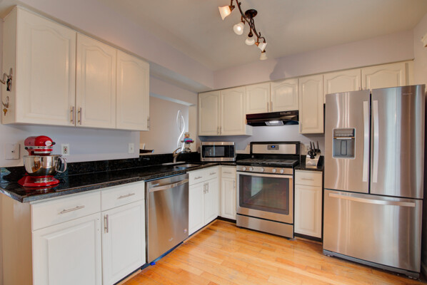 JUST LISTED! Well maintained Garage Townhome in popular Ashburn Farm! Spacious & Open main living area with vaulted foyer & HW stairs and HW floors. Freshly painted throughout most of the property! Large eat-in kitchen boasts a Gas Range, Pantry and updated SS Appliances. Sliding glass doors lead to the wood deck overlooking the treed common area. The upper level is complete with a spacious primary suite, new carpet, dual closets, ceiling fan and primary bathroom ensuite with upgraded tile shower, tile floor and freshly painted. New LVP flooring and light fixture in hall bathroom, Secondary bedrooms: new carpet and ceiling fans. The lower level has interior garage access, with a garage door opener, half bathroom and spacious recreation room with a cozy wood burning fireplace. The walk out back yard access adds convenience and functionality. Ease of Parking: Garage, driveway and a reserved spot out front - #3. Ashburn Farm is a vibrant community and as a resident you'll have access to exclusive neighborhood amenities including 3 outdoor swimming pools, tennis/pickleball courts, playgrounds, ball fields, basketball courts, scenic walking trails, tranquil ponds & fountains, community parks, playgrounds, a clubhouse, Pavillion, picnic area, sand volleyball and more! Enjoy nearby shopping, dining and the public library. Ashburn Park (a.k.a. Dinosaur Park) features picnic and playground areas. Trailside Park has a playground, in-line hockey rink and lighted baseball/softball fields. Convenient access to the Ashburn Metro Silver Line, W&OD Trail, One Loudoun, the Dulles Greenway and other commuting corridors and nearby Dulles International Airport. Zoned for top-rated Stone Bridge High School and top tier feeder schools. In an unbeatable location, and endless possibilities, this home is ready to welcome you. Welcome Home!