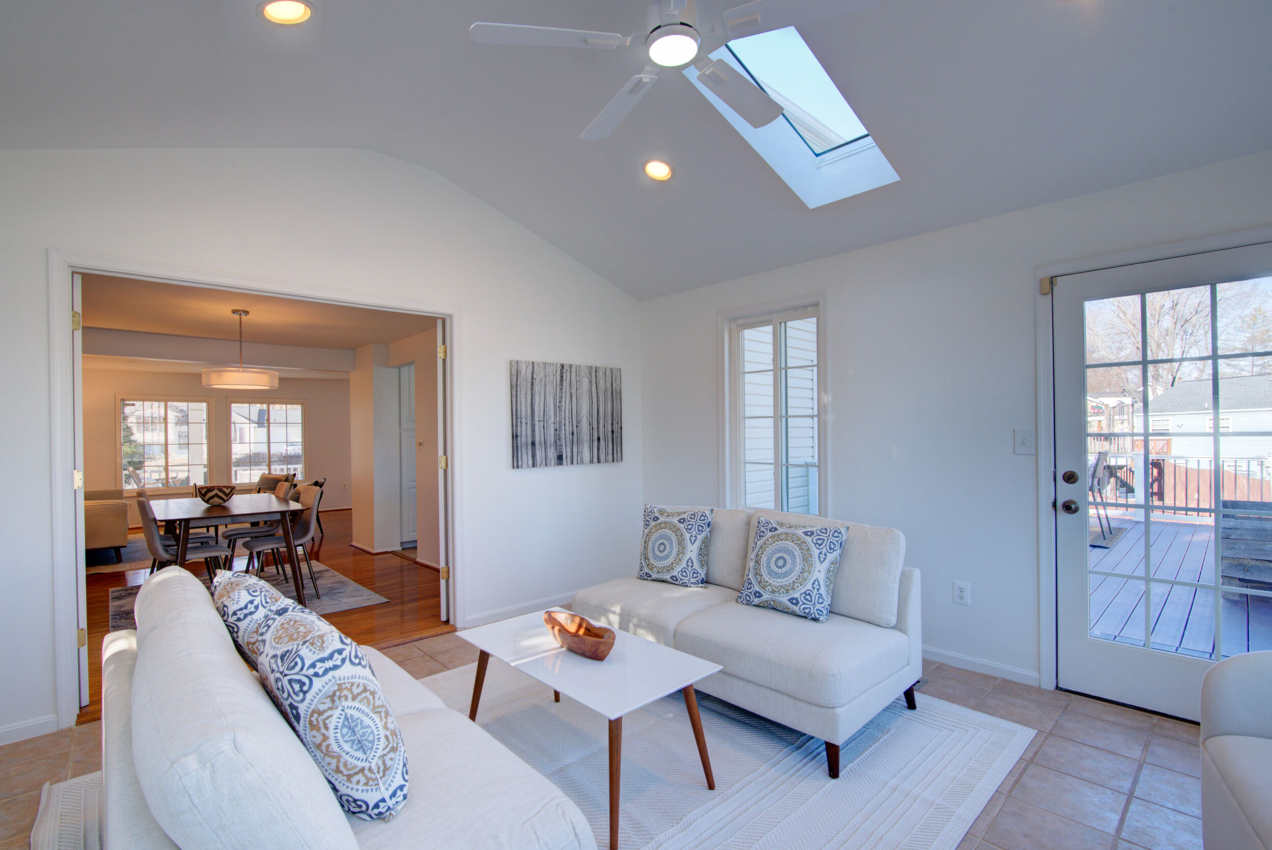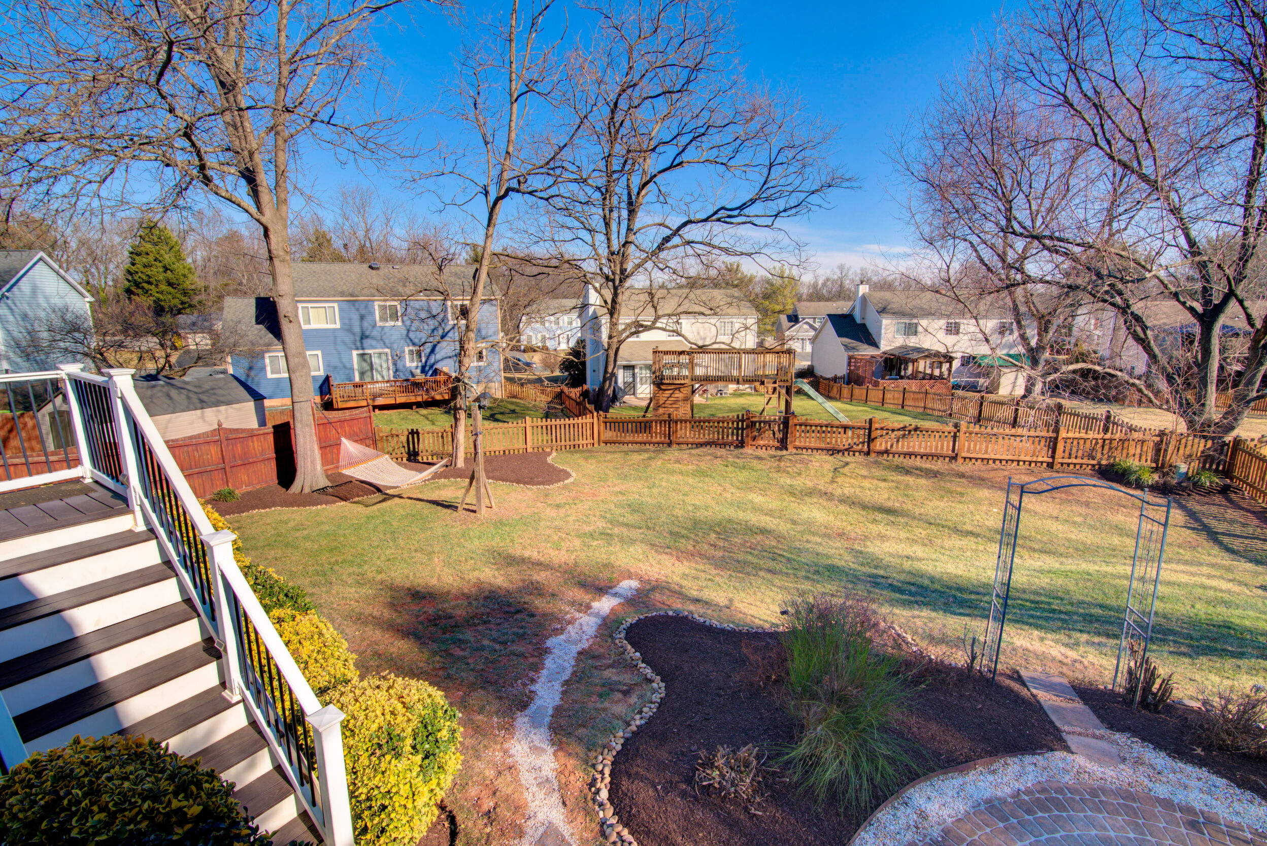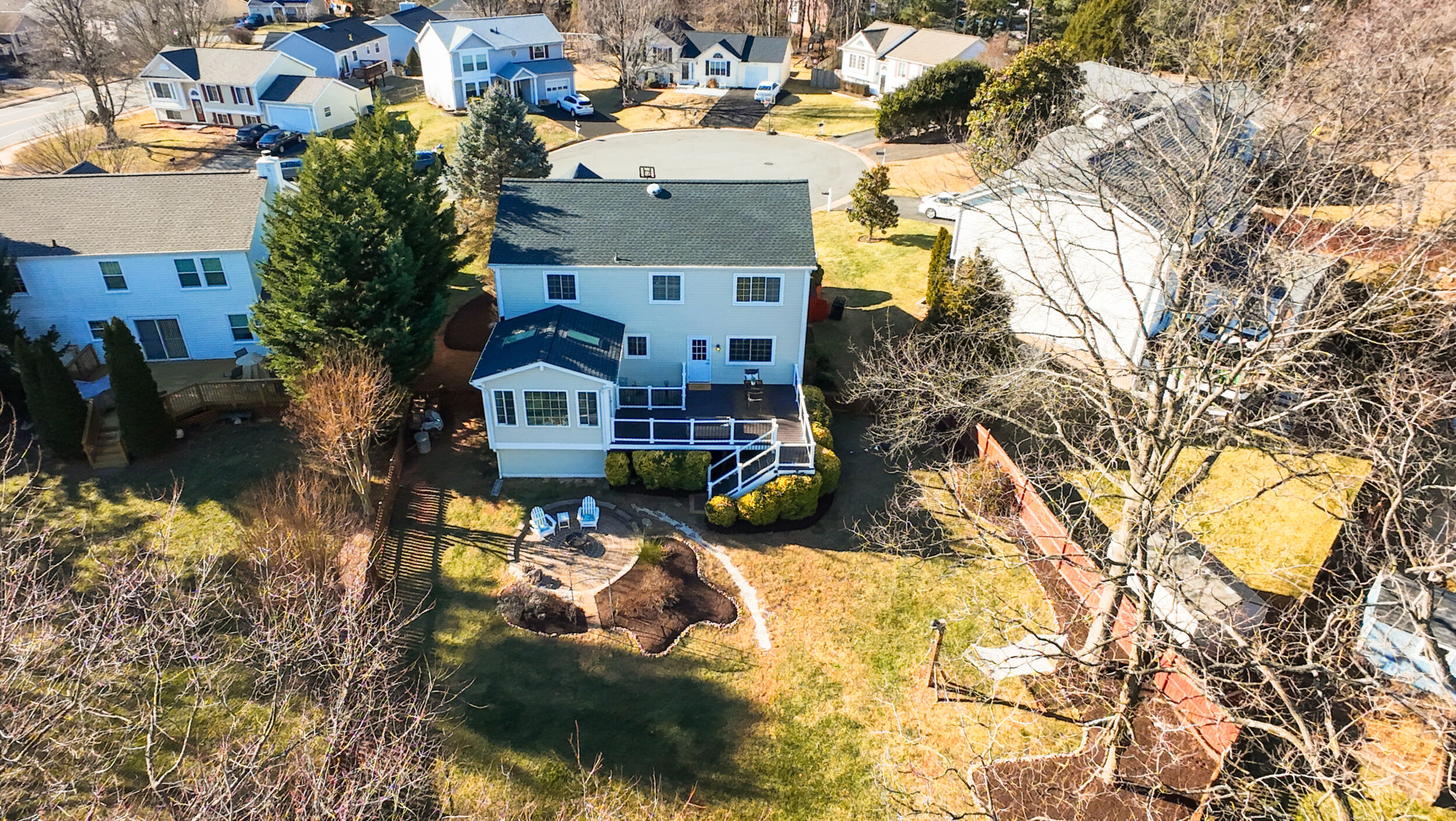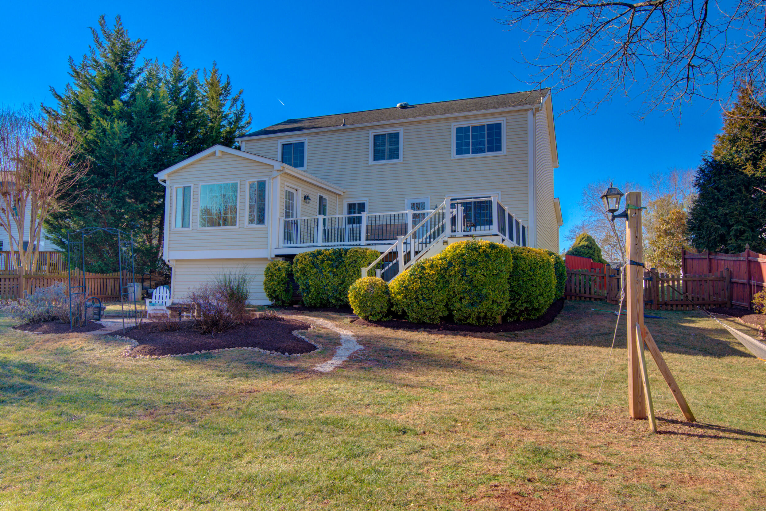 Welcome home to this updated and charming residence, perfectly tucked away on a quiet cul-de-sac and set on a generous .23-acre lot with a large, fully fenced backyard. Relax on the delightful front porch, complete with a two-person swing and ceiling fan, which is an ideal spot for sipping your morning coffee or unwinding on warm summer evenings. Inside, gleaming hardwood floors flow through a light-filled living room with windows overlooking the porch. The open layout continues into the dining room, where French doors lead to a stunning sunroom featuring a cathedral ceiling, two skylights, walls of windows, and a glass door opening to the Trex deck and backyard. The crisp white kitchen offers granite countertops, stainless steel appliances, and a convenient breakfast bar, and opens to a cozy family room with a wall of windows and direct access to the expansive deck that is perfect for outdoor entertaining and al fresco dining. Upstairs, the impressive primary suite includes a charming built-in vanity, walk-in closet, and a recently updated en-suite bath. Three additional bedrooms and a refreshed hall bathroom with an oversized quartz countertop complete the upper level. The versatile lower-level recreation room provides flexible space for movie nights, crafts, games, or a home gym. Ideally located near shops, restaurants, grocery stores, Northern Virginia Community College, Route 7, Dulles Greenway, and Dulles Airport, this home offers comfort, style, and convenience in a peaceful setting. Capital Improvements Include: 2025: All Bathrooms Updated. New Carpet in 4 Bedrooms and Lower Level Stairs. New Light Fixtures. New Ceiling Fan in Sunroom. Interior Painted, New Door to Deck. New Dryer.New Rubber Mats on Garage Floor. Professional Landscaping, 2024: New Roof, New Gutters, New Siding. 2023: New Oven. 2021: Added Recessed Lights in Living Room. New Ceiling Fan on Porch. Reinforced 3 Deck Posts in Concrete - hot tub load bearing. 2018: New HVAC (and is seasonally inspected). 2017: Front Porch - New Slate Flooring and Railings. 2016: New Trex Deck. New Backyard Fence.