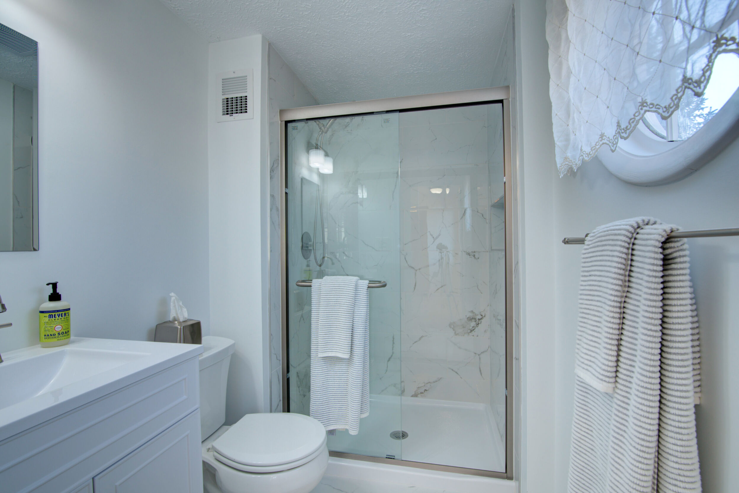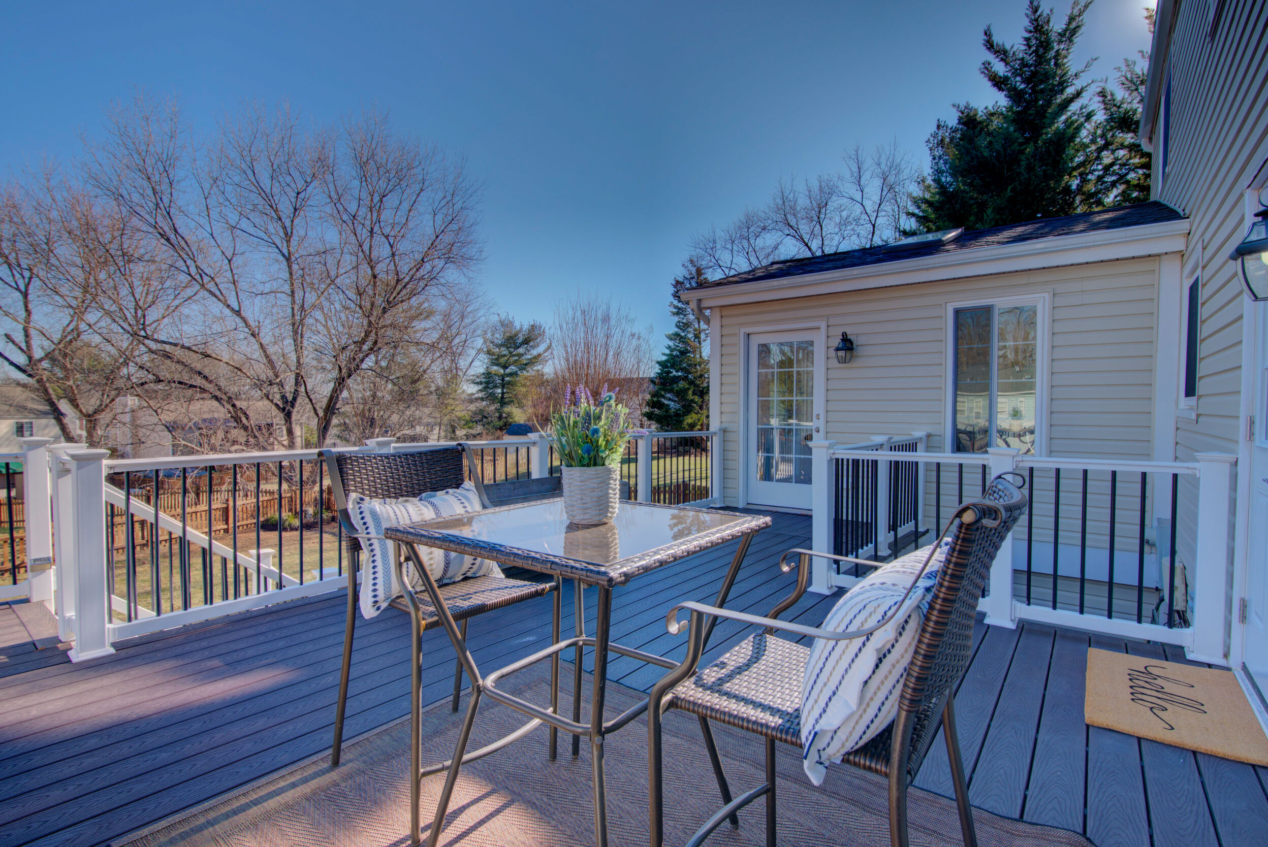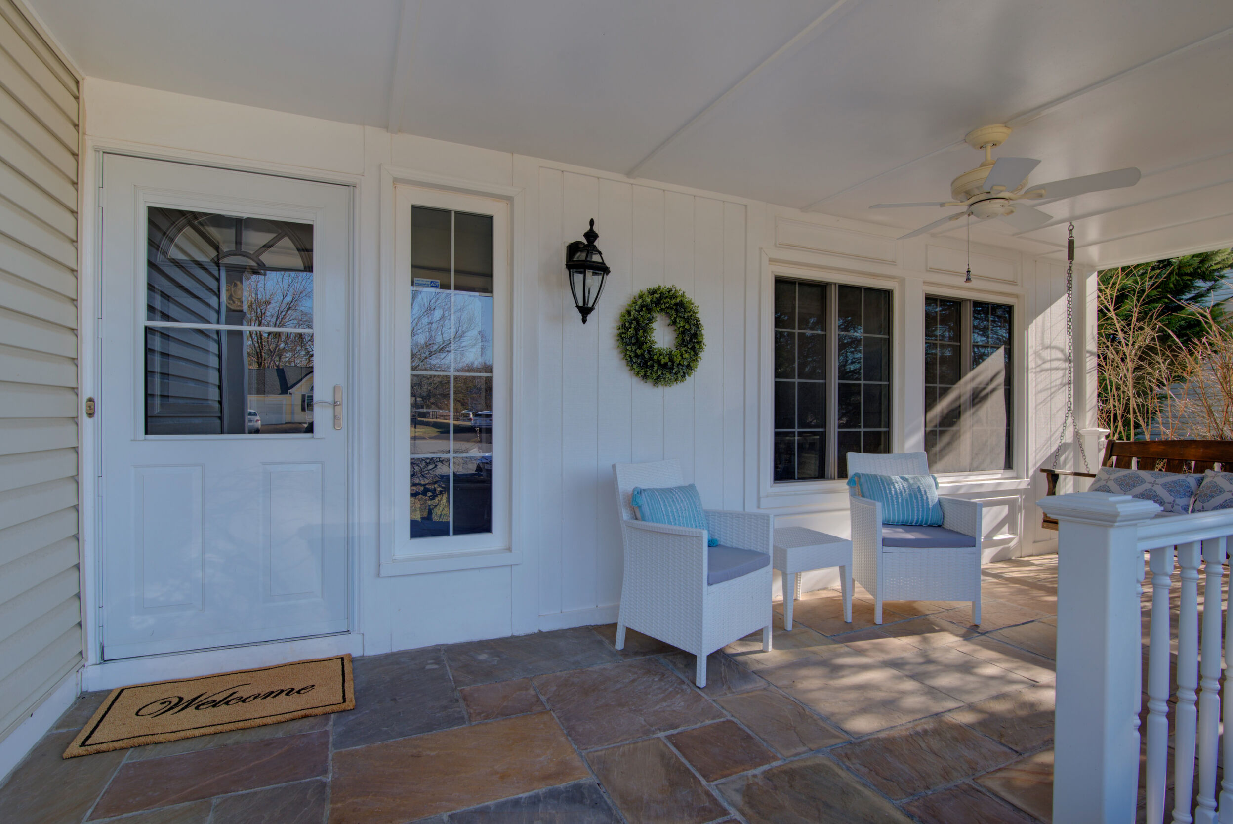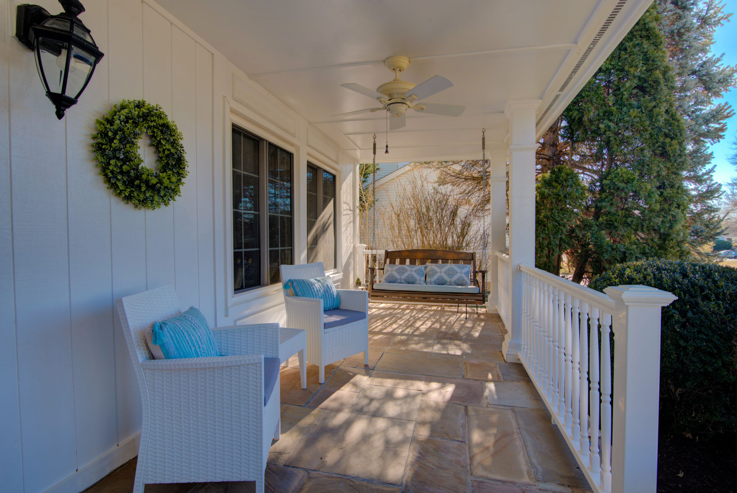 Welcome home to this updated and charming residence, perfectly tucked away on a quiet cul-de-sac and set on a generous .23-acre lot with a large, fully fenced backyard. Relax on the delightful front porch, complete with a two-person swing and ceiling fan, which is an ideal spot for sipping your morning coffee or unwinding on warm summer evenings. Inside, gleaming hardwood floors flow through a light-filled living room with windows overlooking the porch. The open layout continues into the dining room, where French doors lead to a stunning sunroom featuring a cathedral ceiling, two skylights, walls of windows, and a glass door opening to the Trex deck and backyard. The crisp white kitchen offers granite countertops, stainless steel appliances, and a convenient breakfast bar, and opens to a cozy family room with a wall of windows and direct access to the expansive deck that is perfect for outdoor entertaining and al fresco dining. Upstairs, the impressive primary suite includes a charming built-in vanity, walk-in closet, and a recently updated en-suite bath. Three additional bedrooms and a refreshed hall bathroom with an oversized quartz countertop complete the upper level. The versatile lower-level recreation room provides flexible space for movie nights, crafts, games, or a home gym. Ideally located near shops, restaurants, grocery stores, Northern Virginia Community College, Route 7, Dulles Greenway, and Dulles Airport, this home offers comfort, style, and convenience in a peaceful setting. Capital Improvements Include: 2025: All Bathrooms Updated. New Carpet in 4 Bedrooms and Lower Level Stairs. New Light Fixtures. New Ceiling Fan in Sunroom. Interior Painted, New Door to Deck. New Dryer.New Rubber Mats on Garage Floor. Professional Landscaping, 2024: New Roof, New Gutters, New Siding. 2023: New Oven. 2021: Added Recessed Lights in Living Room. New Ceiling Fan on Porch. Reinforced 3 Deck Posts in Concrete - hot tub load bearing. 2018: New HVAC (and is seasonally inspected). 2017: Front Porch - New Slate Flooring and Railings. 2016: New Trex Deck. New Backyard Fence.