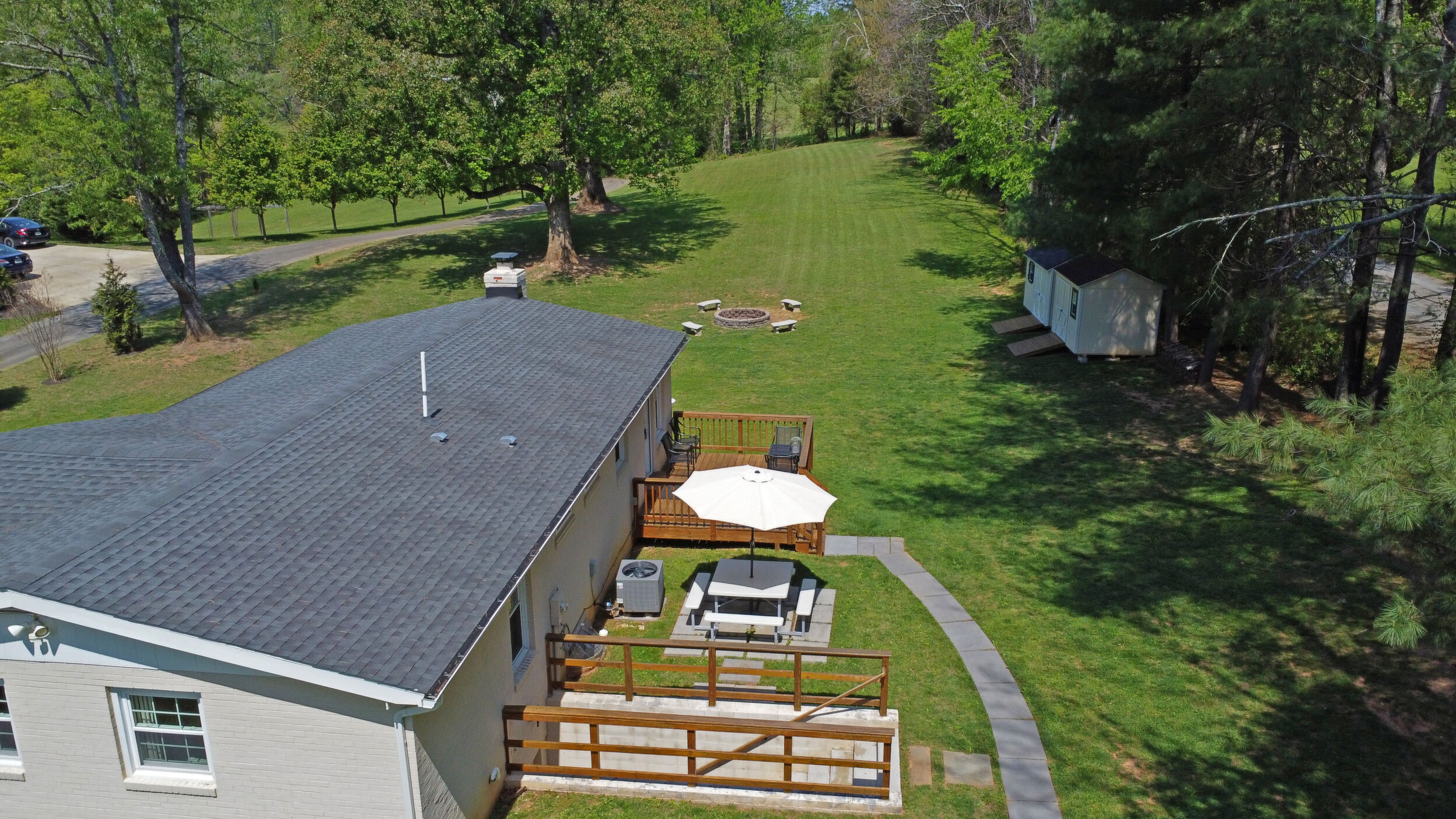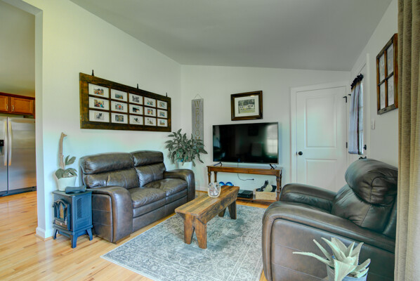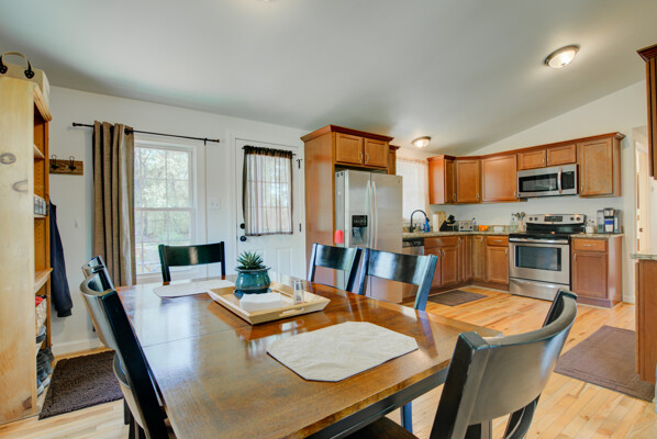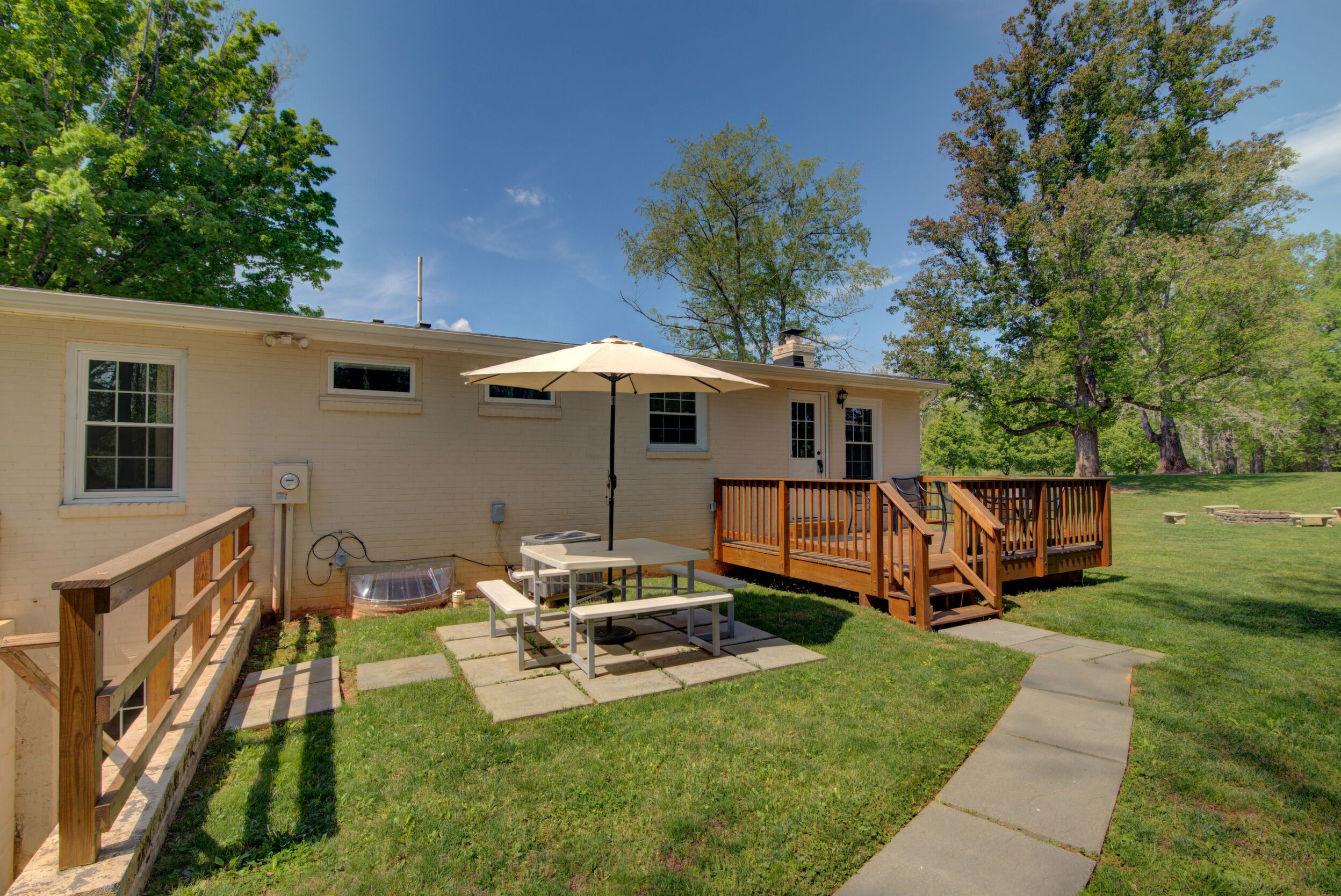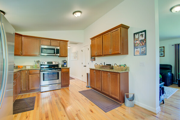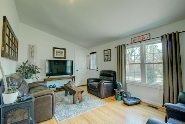 Tucked on a quiet 1.16-acre lot, this well-kept ranch offers the kind of space and setting that's getting harder to find. The home sits comfortably, with mature trees, open lawn, and a fire pit area that feels made for evenings outside. There's plenty of room to spread out, garden, or just enjoy a little breathing room. Inside, the layout is simple and functional in the best way. The kitchen features granite counters, stainless appliances, and warm cabinetry, with enough workspace to actually cook and live in-not just look at. It opens easily into the main living areas, where hardwood floors and neutral finishes keep things clean and move-in ready. All three bedrooms are on the main level, along with two full baths, making for easy one-level living. The lower level has drywall and is currently used as living space to add a lot of flexibility-whether you need a rec room, media space, hobby area, or just extra room to hang out, it's already set up and ready for your flooring. Out back, the deck and patio give you options for entertaining or relaxing, overlooking the wide, open yard. The setting is private without feeling isolated, and there's a nice balance of cleared space and natural surroundings. If you've been looking for a solid, comfortable home with land, usable indoor space, and a setting that feels a little more peaceful-this one is worth a look.
