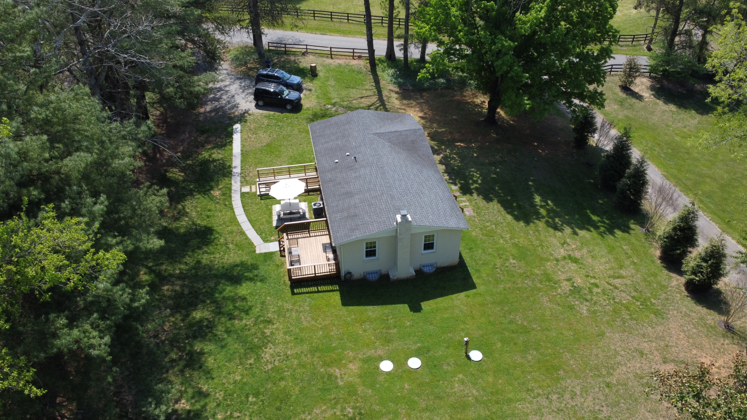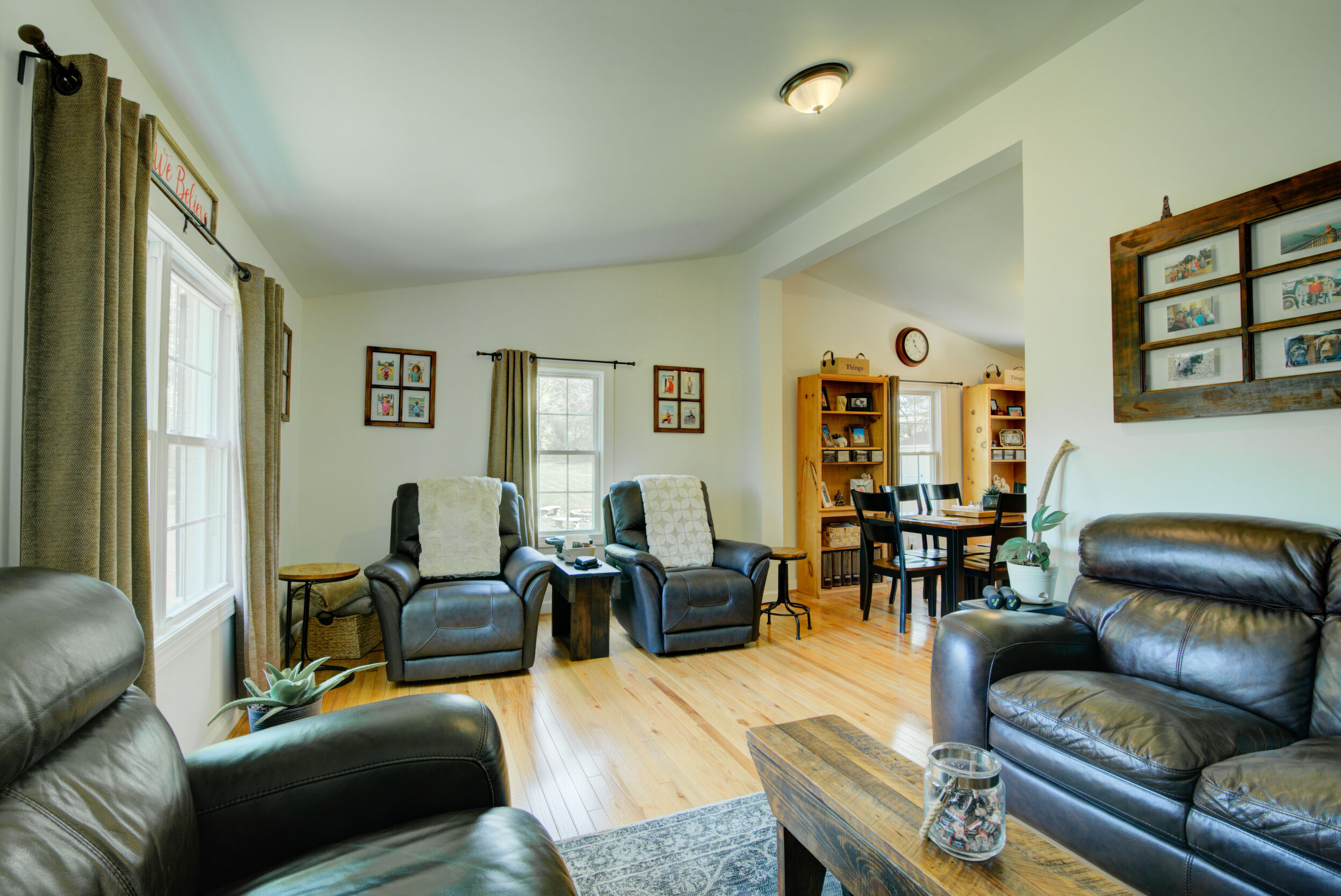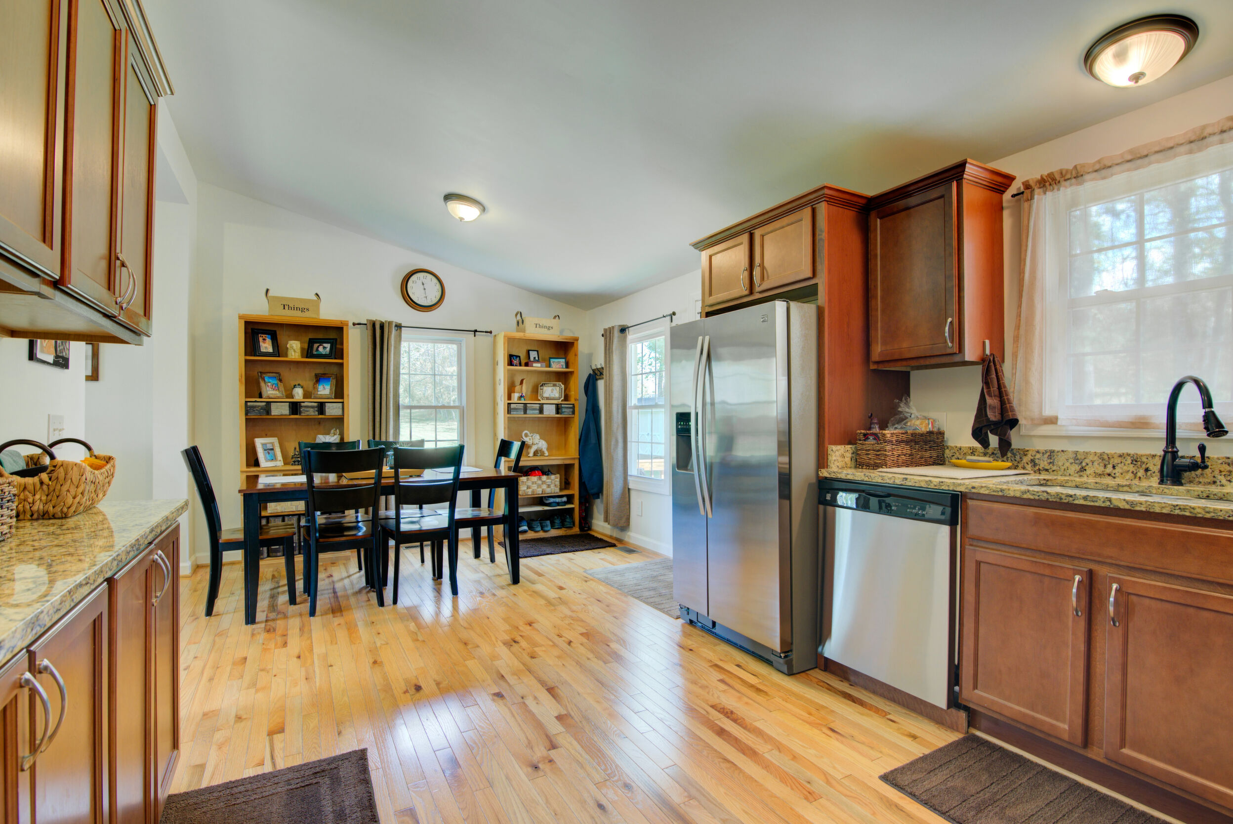 Tucked on a quiet 1.16-acre lot, this well-kept ranch offers the kind of space and setting that's getting harder to find. The home sits comfortably, with mature trees, open lawn, and a fire pit area that feels made for evenings outside. There's plenty of room to spread out, garden, or just enjoy a little breathing room. Inside, the layout is simple and functional in the best way. The kitchen features granite counters, stainless appliances, and warm cabinetry, with enough workspace to actually cook and live in-not just look at. It opens easily into the main living areas, where hardwood floors and neutral finishes keep things clean and move-in ready. All three bedrooms are on the main level, along with two full baths, making for easy one-level living. The lower level has drywall and is currently used as living space to add a lot of flexibility-whether you need a rec room, media space, hobby area, or just extra room to hang out, it's already set up and ready for your flooring. Out back, the deck and patio give you options for entertaining or relaxing, overlooking the wide, open yard. The setting is private without feeling isolated, and there's a nice balance of cleared space and natural surroundings. If you've been looking for a solid, comfortable home with land, usable indoor space, and a setting that feels a little more peaceful-this one is worth a look.